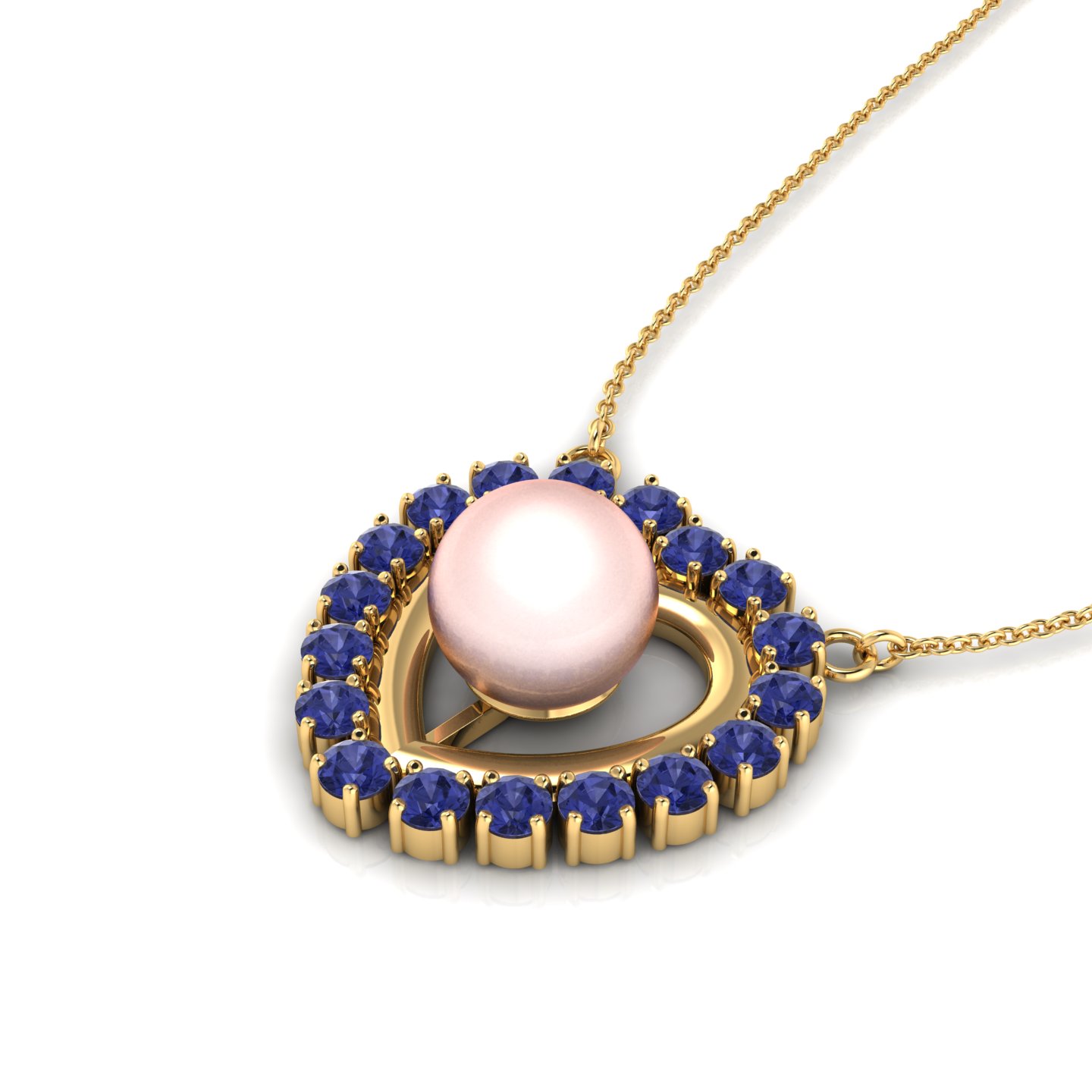 Unleash your free spirit with the Akoya Pearl And Tanzanite Rose Gold Filled Heart Pendant bracelet—a perfect fusion of bold charm and effortless boho chic. This Pendant features a teardrop-shaped pearl surrounded by a halo of smaller, tanzanite gemstone, set in a sterling rose gold metal. The pendant hangs from a delicate rose gold chain. The pendant's dimensions are approximately 23.29 MM in length and 24.23 MM in width, with a pearl is 10 MM and side stone is 3.2 MM. The weight of the pendant is around 5.4 GRM Approx.