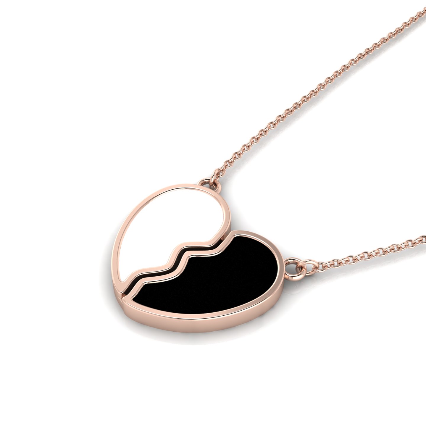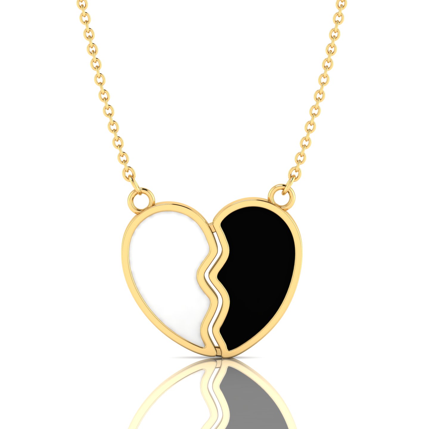 Looking for a way to stay connected with your best friend? This black and white enamel silver broken heart pendant features a heart-shaped design with a split structure that forms two matching halves. It is widely considered the latest fashion for meaningful jewelry. One half is filled with white enamel, while the other half is filled with black enamel, creating a simple and clear contrast. The two halves are separated by a soft, wavy vertical line that gives the heart a smooth and balanced look. This split heart pendant is a wonderful surprise for a cousin’s birthday or a "thinking of you" gift for a long-distance partner. Each half is outlined with a polished silver frame that keeps the shape clean and well-defined. The edges are rounded and glossy, with no sharp angles. Small silver loops are attached at the top of each half, connecting the pendant securely to a fine silver cable style chain. Your new enamel pendant will arrive ready to wear. The pendant hangs evenly and lightly, keeping the overall look neat and well-balanced.