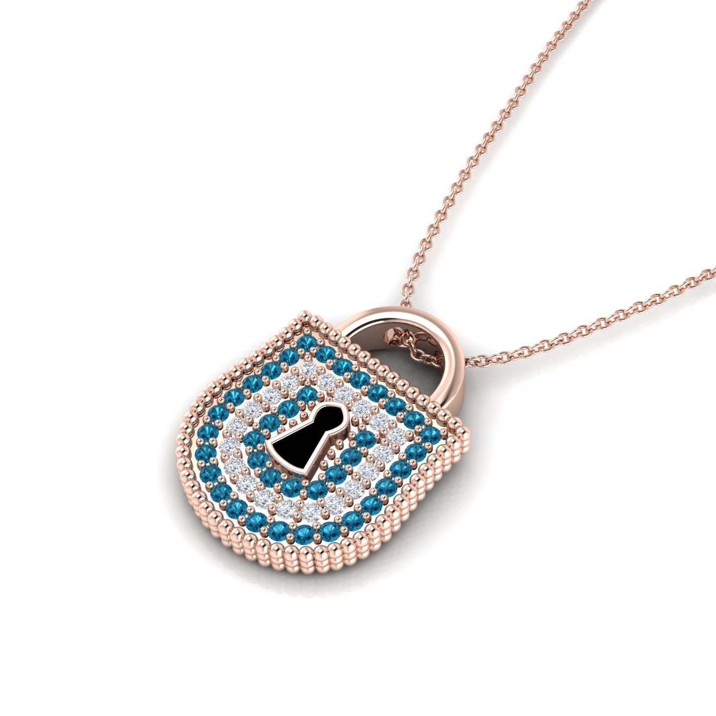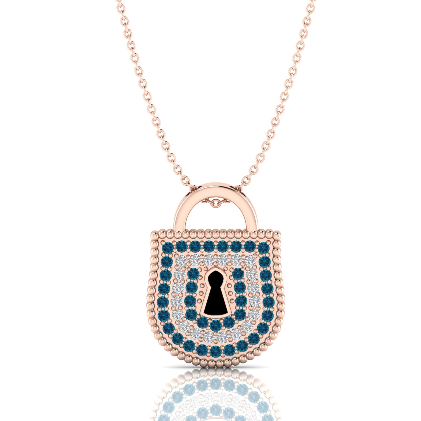A necklace that blends with every outfit Huzurr Blue Diamond Gold Filled Padlock Pendant. The pendant is shaped like a padlock, with a prominent keyhole design in the center. This necklace features a prong setting it is Crafted in rich 925 sterling silver with gold plating .This necklace contains 1.5 MM mainstone Blue Diamond, and 1.5 MM moissanites. It has 6 GRM Approx weight, 17.04 MM Approx width and 22.5 MM Approx length. Blue diamonds are often associated with royalty, purity, loyalty, and power.They are believed to bring inner peace, wisdom, and good health to the wearer.