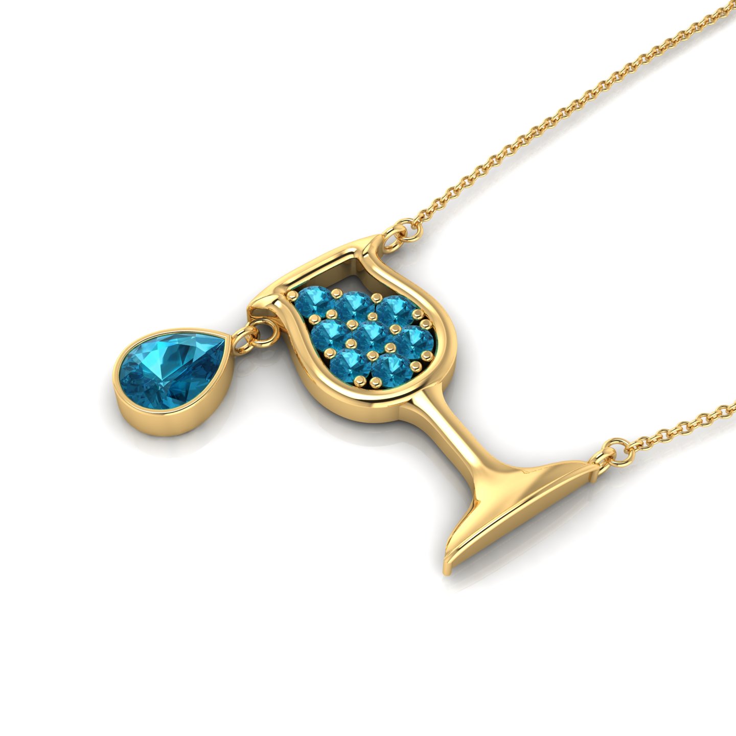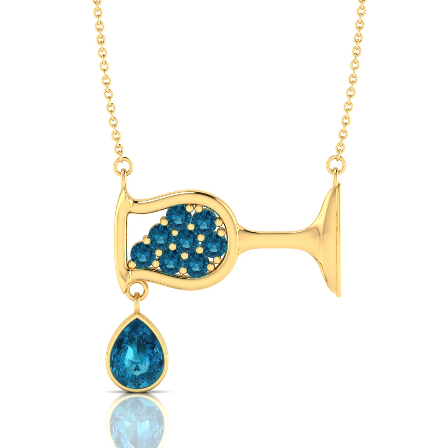 Pear-Cut Blue Diamond Wine Glass Sterling Silver Pendant Perfect shine for both day and night. This silver necklace featuring a wine glass pendant adorned with blue gemstones and a single blue teardrop-shaped gemstone suspended below it. This necklace features a prong setting it is Crafted in rich 925 sterling silver .This necklace contains 8 MM mainstone Blue Diamond, and 3 MM moissanites. It has 4.7 GRM Approx weight, 27.37 MM Approx width and 26.29 MM Approx length. wearing Blue diamonds are often associated with royalty, purity, loyalty, and power. Blue diamonds can also symbolize spiritual awareness and intuition