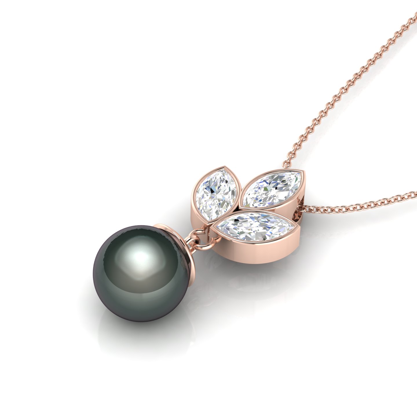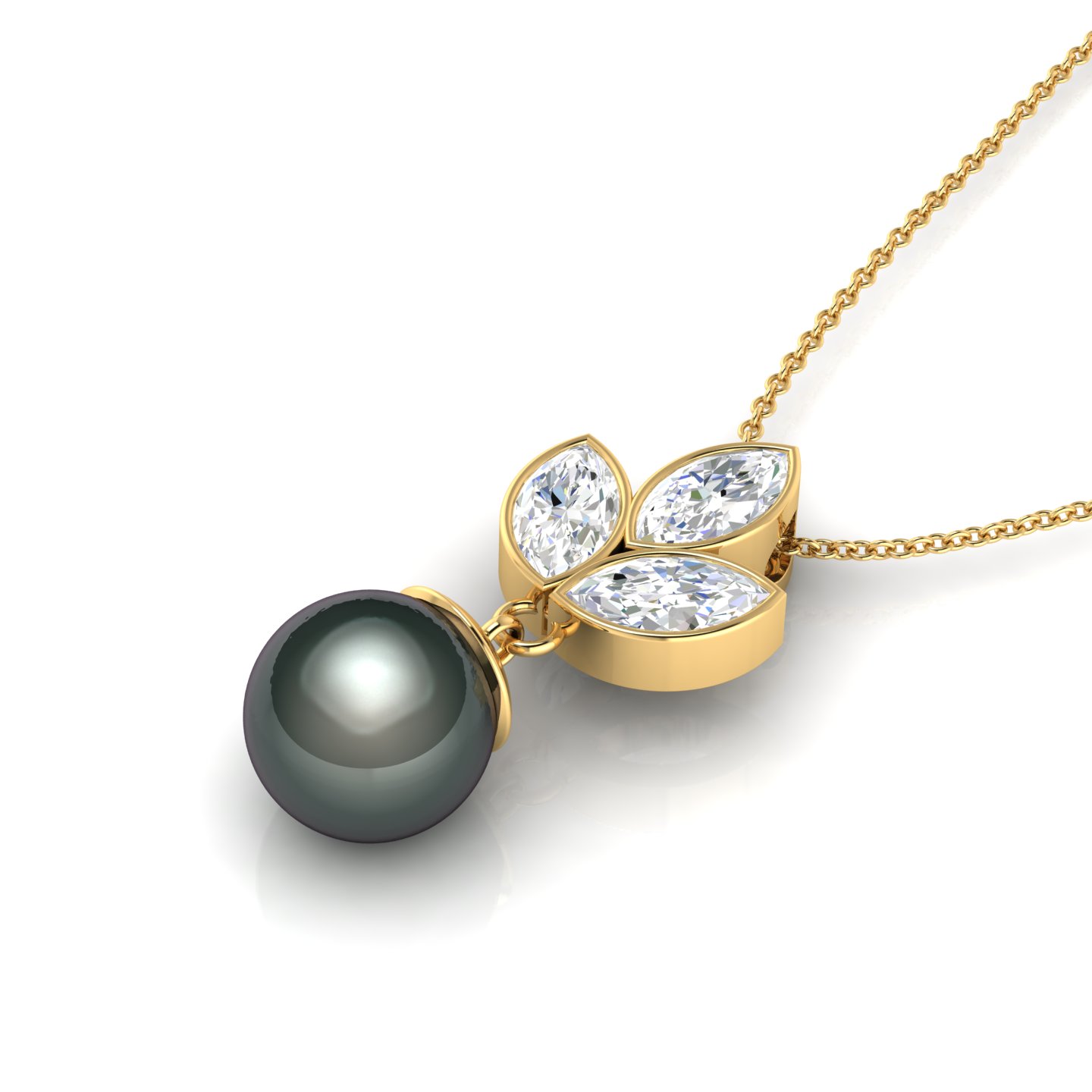 Designed for everyday beauty, this piece adds a soft sparkle that never goes unnoticed. This necklace features a bezel setting it is Crafted in rich 925 sterling silver. This necklace contains 10 MM mainstone black pearl and 8.4 MM moissanites. It has 2.8 GRM Approx weight, 12.91 MM Approx width and 27.56 MM Approx hight. The deep, mysterious colors of black Tahitian pearls are associated with inner wisdom and intuition. The gem is thought to help ground unstable emotions and clear the mind, which promotes a deeper understanding of one's purpose.
