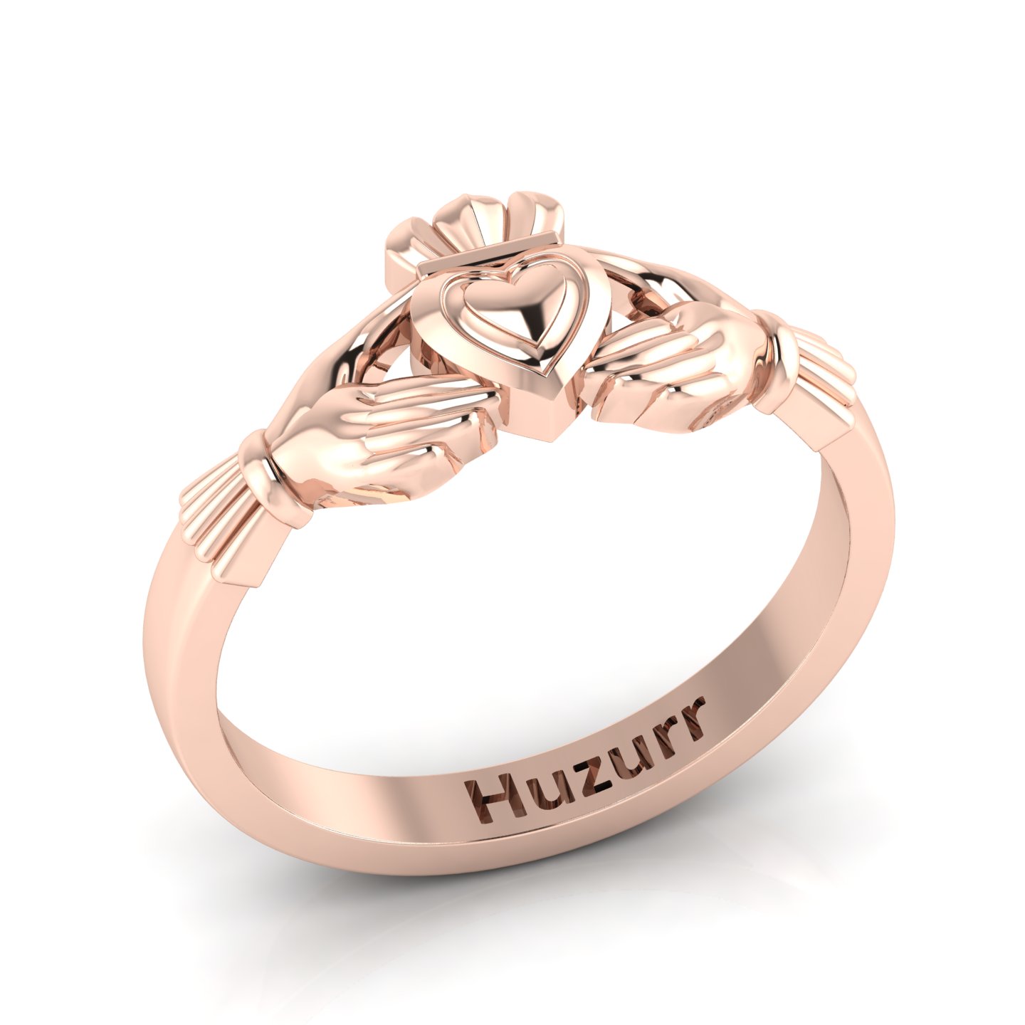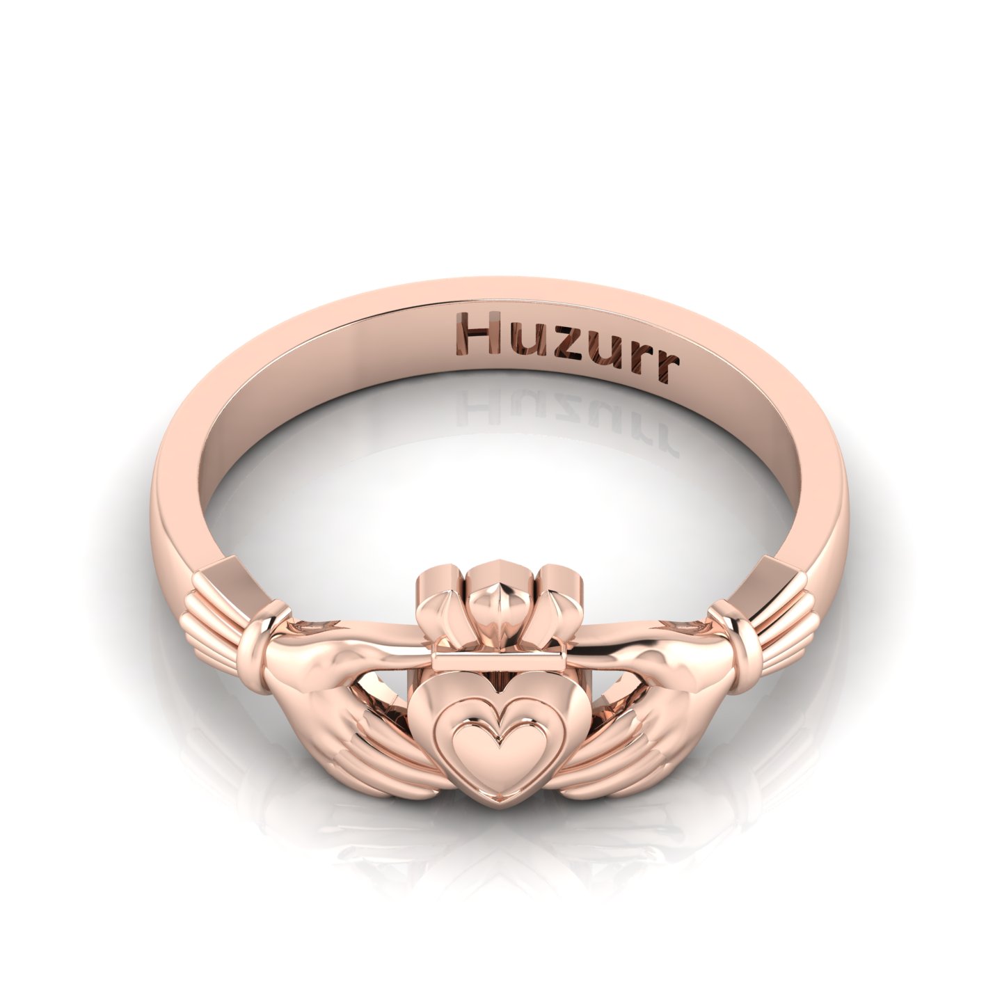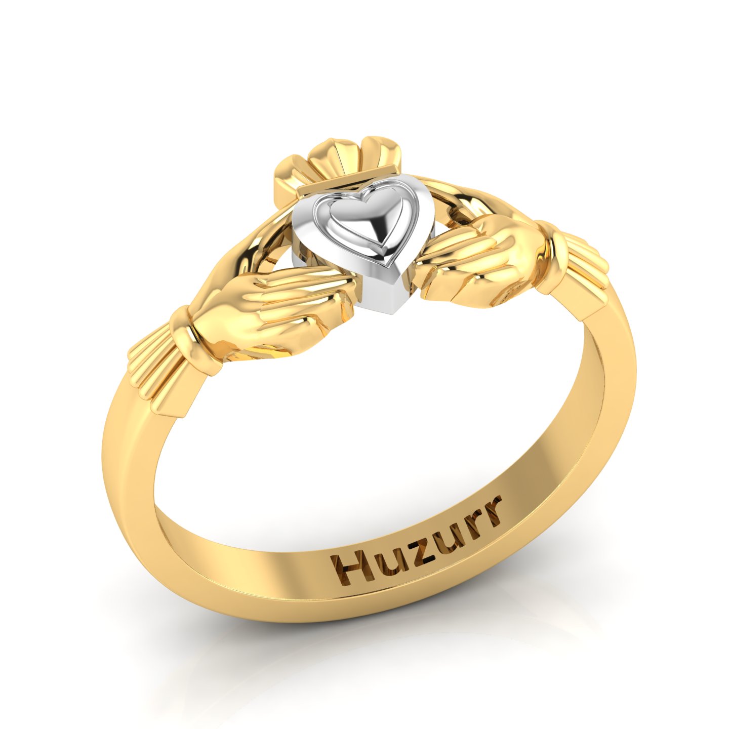 Celebrate your bond with this Heart Crown Gold Plated Claddagh Ring, the perfect Friendship Gift For BFF to show how much you care. This ring is inspired by the traditional Irish Claddagh ring, symbolizing loyalty and love. It makes a stunning matching ring for best firend, sets to keep you connected. It features a heart held by two hands, with a crown on top. At the center of the ring is a raised metal heart. This gold-plated ring radiates warmth and elegance. On both sides of the heart, there are 3D sculpted hands, gently holding the heart. This heart ring design is rich with meaning. The hands face slightly forward and are designed with detailed fingers and cuffs around the wrists. It is a thoughtful Matching Friendship Gift for any duo. The cuffs have vertical groove lines for added style. A stylized crown sits on top of the heart. The crown has several pointed arches, making it look royal. The remaining shank type of ring on both sides is straight and plain. The entire ring is gold-plated.