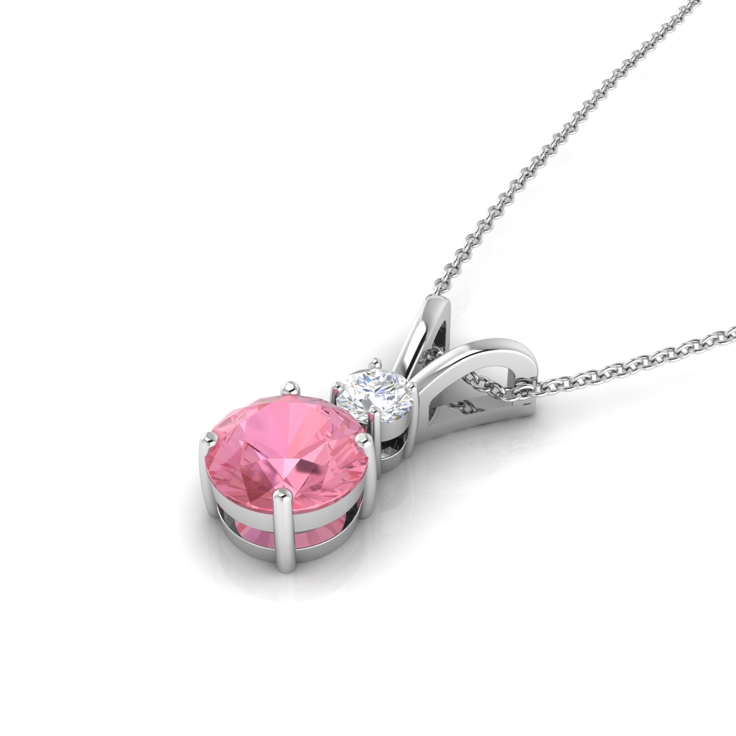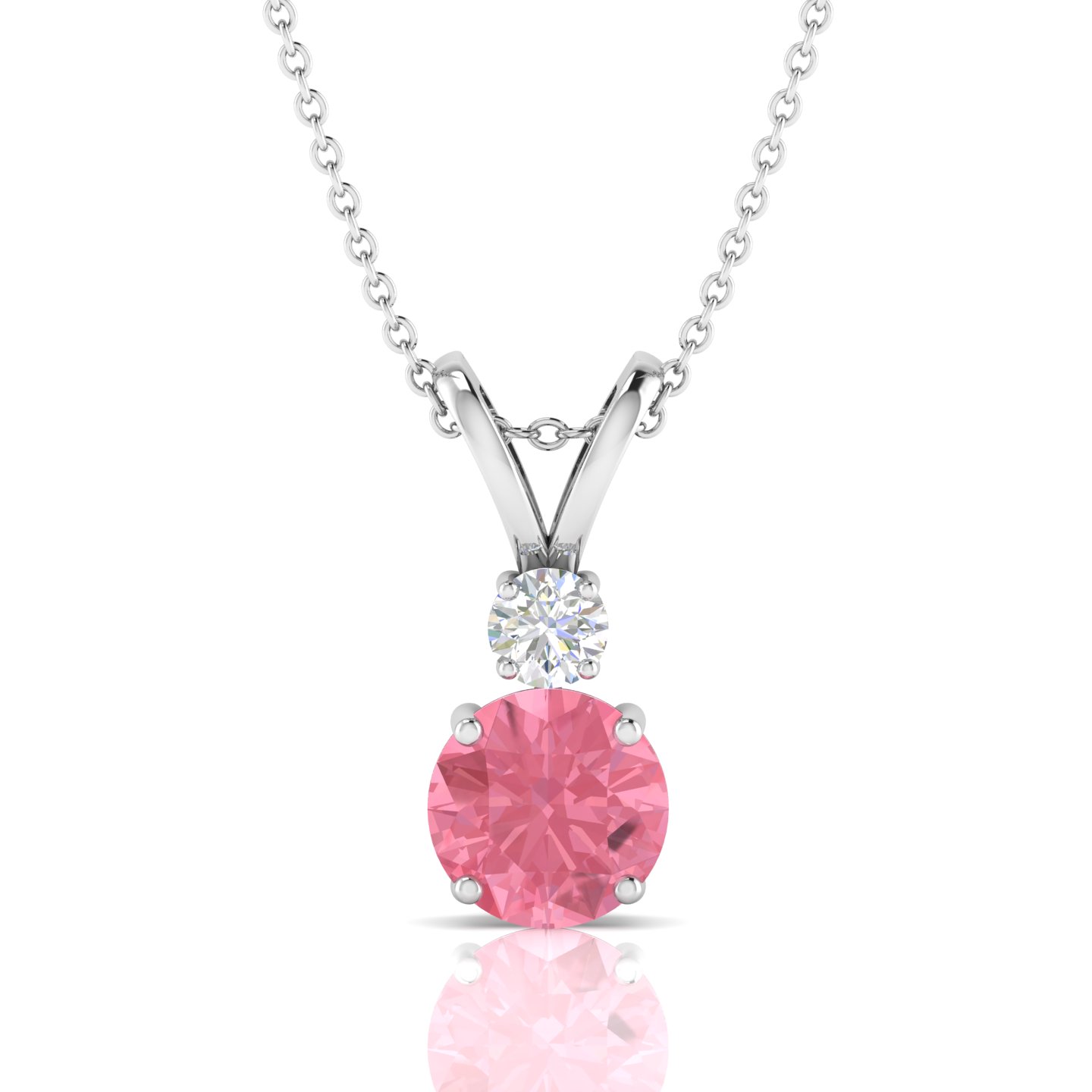 The stone's gentle energy is said to soothe the soul and bring feelings of joy and inner peace. Celebrate your special moments with this Round Morganite Solitaire Rose Gold Plated Diamond V-Bale Necklace, crafted to make you stand out.This necklace features a prong setting it is Crafted in rich 925 sterling silver with rose gold plating .This necklace contains 8 MM mainstone morganite and 4 MM moissanites. It has 2.56 GRM Approx weight, 8 MM Approx width and 18.82 MM Approx hight. Made with high-quality materials, this piece is designed to last and impress.Morganite is strongly associated with the heart chakra, symbolizing love and compassion, and is believed to open it for giving and receiving love.