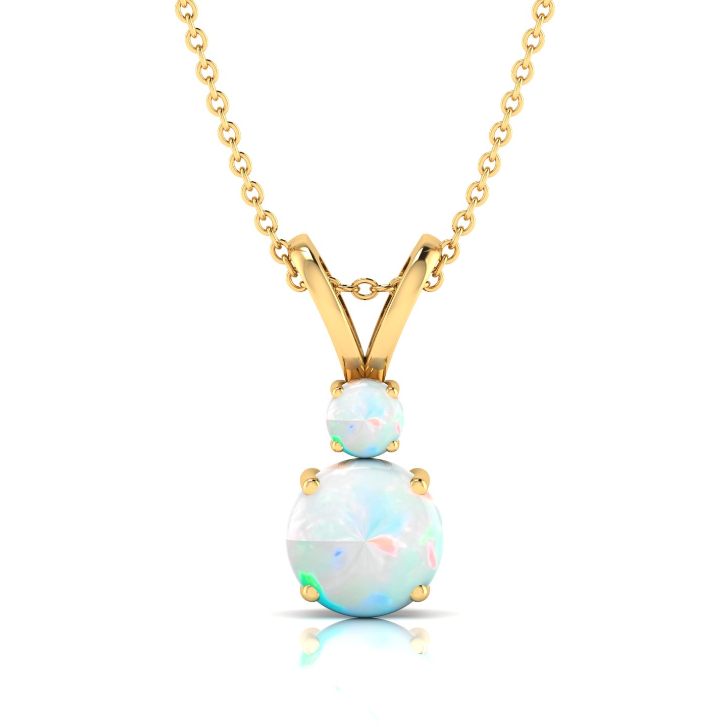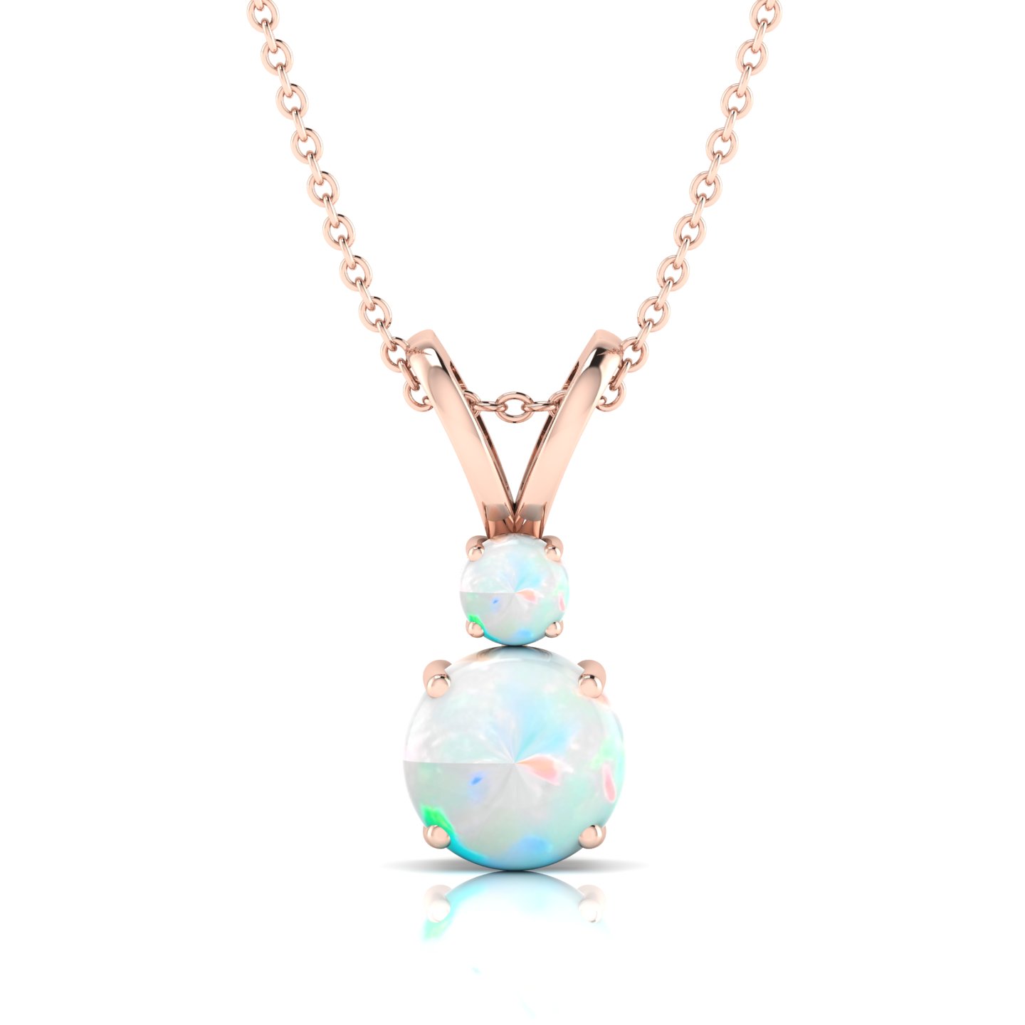 Round Opal Silver Solitaire V-Bale Necklace A necklace that speaks of simplicity and class. This necklace features a prong setting it is Crafted in rich 925 sterling silver. This necklace contains 8 MM mainstone opal and 4 MM opal. It has 2.56 GRM Approx weight, 8 MM Approx width and 18.82 MM Approx length. The stone is believed to sharpen intelligence, enhance artistic and creative abilities, and bring knowledge and wisdom. Wearing opal is thought to bring happiness, good fortune, and a positive outlook to the wearer.