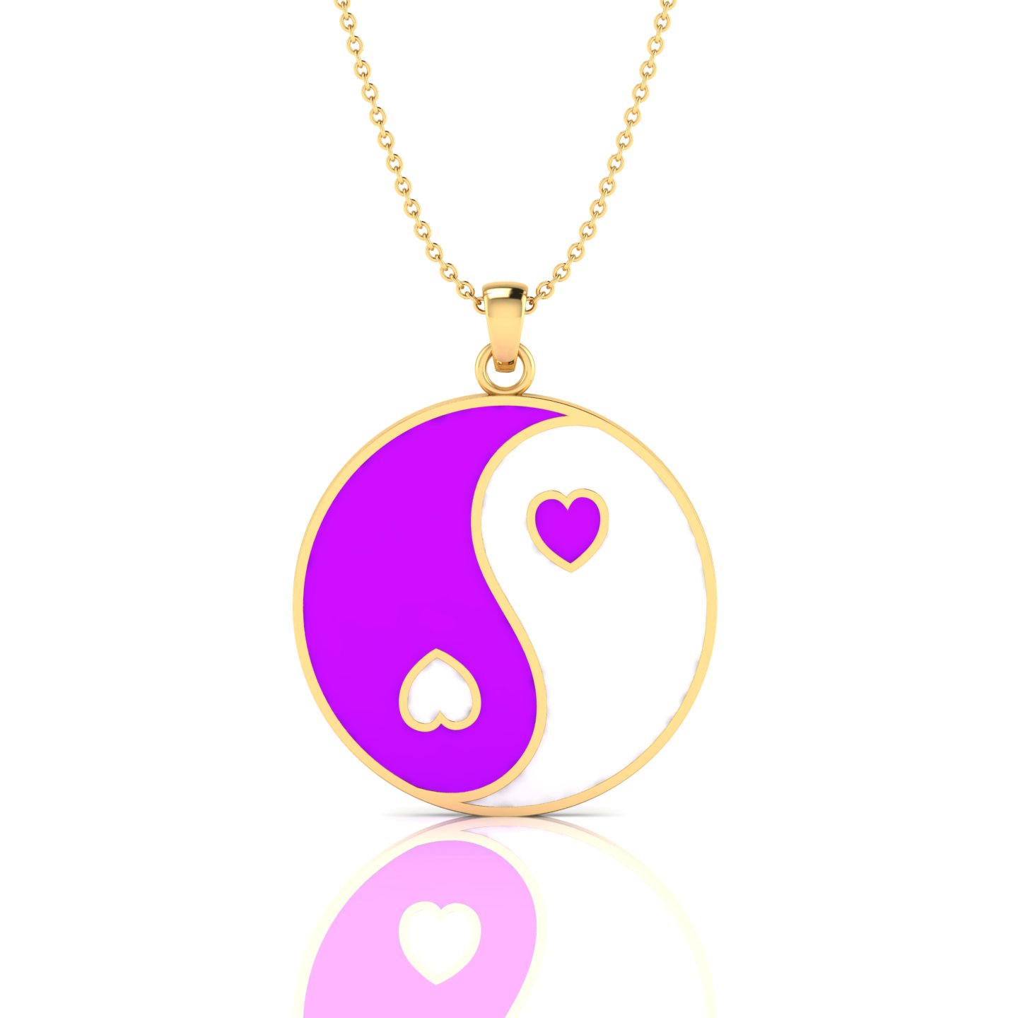 Add a touch of color to her collection with this purple and white enamel sterling silver yin yang feng shui pendant is a minimal and modern pendant with a glossy finish. This would be a lovely daughter’s day present to show your appreciation for her unique spirit. It has a round, circular shape with a smooth silver border around the entire design. The yin yang pendant follows a yin-yang style, divided into two flowing parts that fit together naturally. One part is finished in glossy purple enamel, while the opposite part is finished in glossy white enamel, creating a clean and bold contrast. Because this enamel pendant is so eye-catching, it also makes a great "just because" gift for a granddaughter or a goddaughter. The curved line between the two sides gives the pendant a balanced and fluid look. Each side features a small heart shape placed opposite each other, outlined in silver to match the outer frame. The silver edges and heart outlines are smooth, polished, and softly rounded. A simple silver bail is attached at the top, allowing the pendant to hang neatly. The pendant comes with a fine sterling silver cable chain.