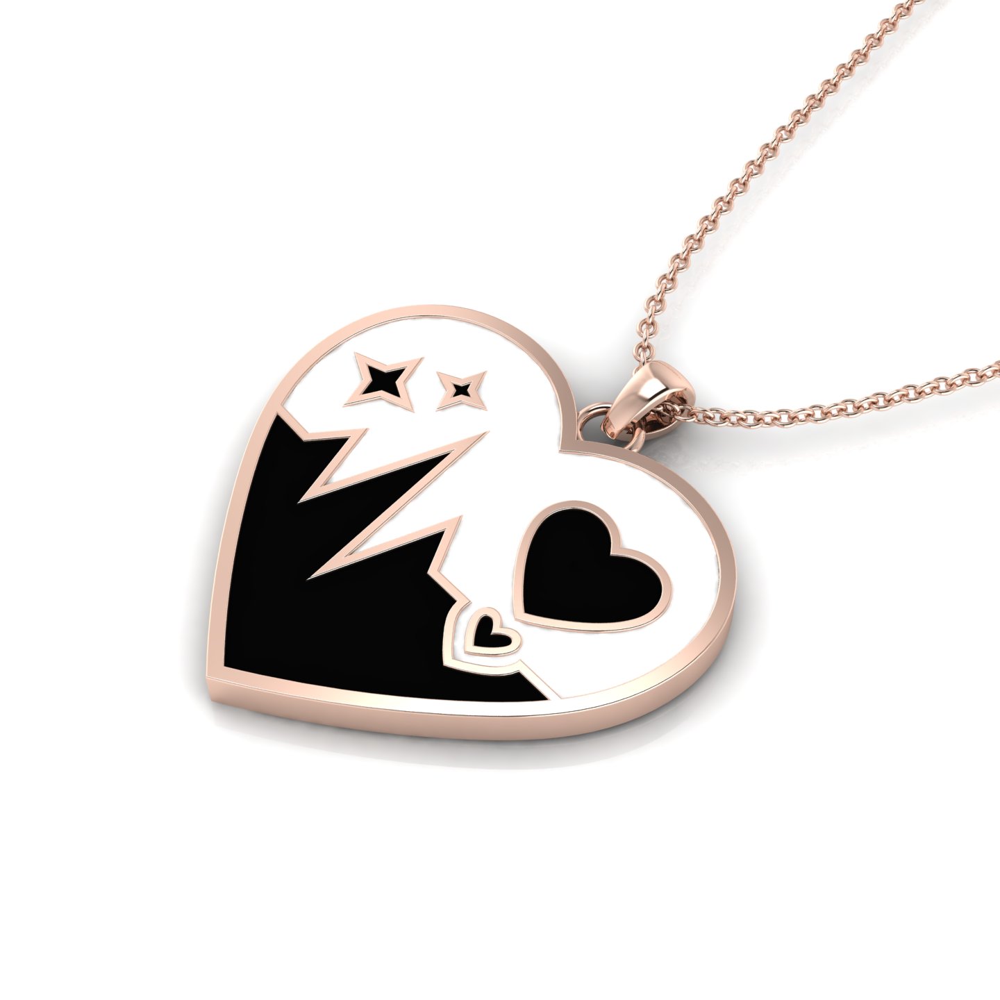Honor the time you have spent together with a jewelry piece that shines as brightly as your future. This pendant is a red and white enamel, rose-gold-plated heart-shaped heartbeat pendant. It is a deeply personal anniversary gift for a partner who has been by your side through every beat of life. The heart features a smooth rose-gold-plated outline with rounded, neatly finished edges. The upper inner section is filled with white enamel, while the lower section is filled with red enamel, creating a clear contrast. This heart pendant is also a wonderful way to celebrate a sister’s milestone or a parent’s wedding celebration. At the bottom, a rose-gold-plated heartbeat line is placed over the red enamel area. On the upper right side, there is a small red enamel heart with a rose-gold-plated border. Below it sits a small double-layer heart design. On the upper left, two red enamel stars are added. Every enamel pendant in our collection is polished to a high-gloss, luxurious finish. A smooth rose-gold-plated bail connects the pendant to a delicate rose-gold-plated chain.
