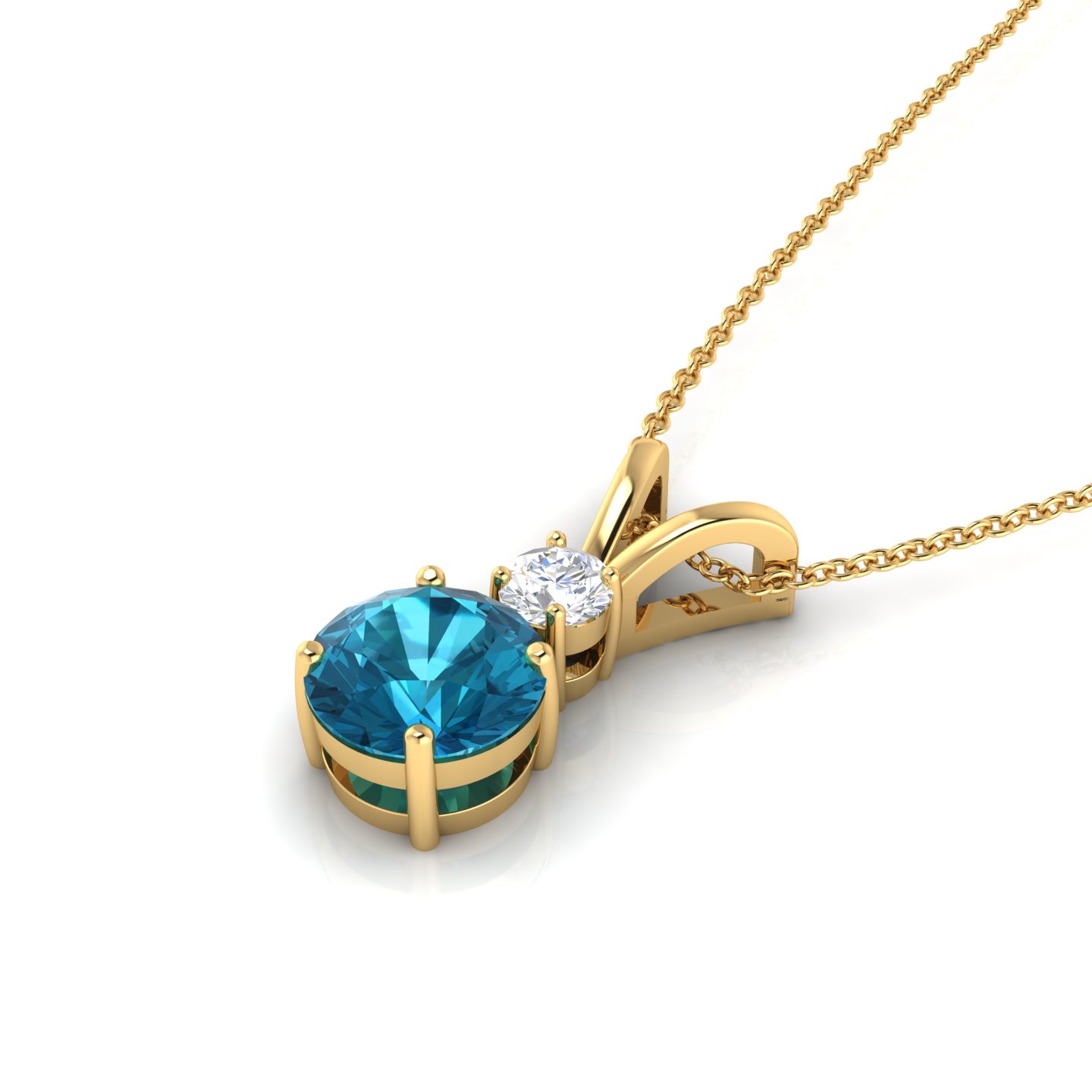 Admired for its unique deep-blue brilliance, London Blue Topaz symbolizes clarity, strength, and everlasting beauty. This necklace features a prong setting it is Crafted in rich 925 sterling silver with rose gold plating. This necklace contains 8 MM mainstone london blue topaz and 4 MM moissanites. It has 2.56 GRM Approx weight, 8 MM Approx width and 18.82 MM Approx hight. It is thought to have a soothing effect on the mind and emotions, helping to reduce stress, anxiety, and feelings of anger. This calming energy can help overcome hurt feelings and frayed nerves.