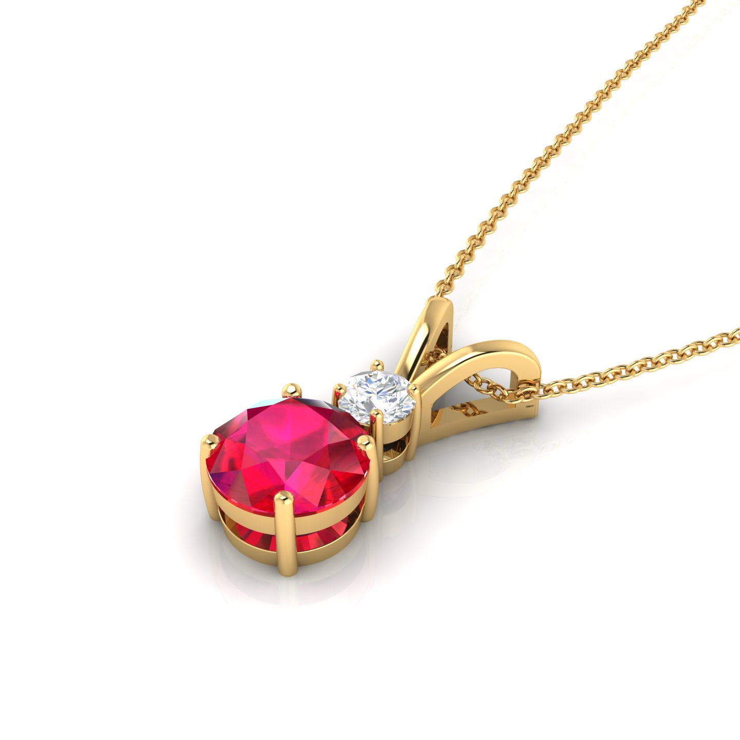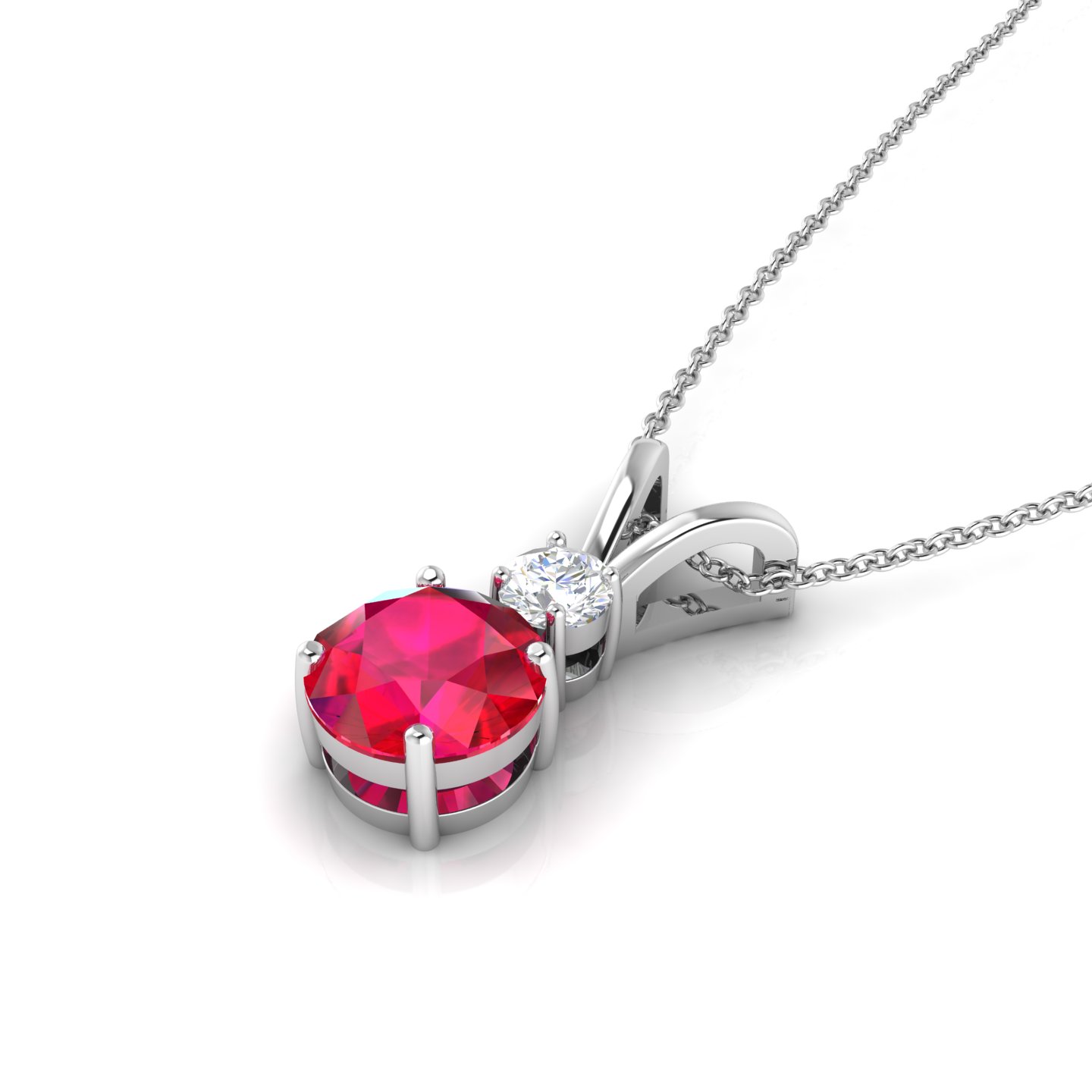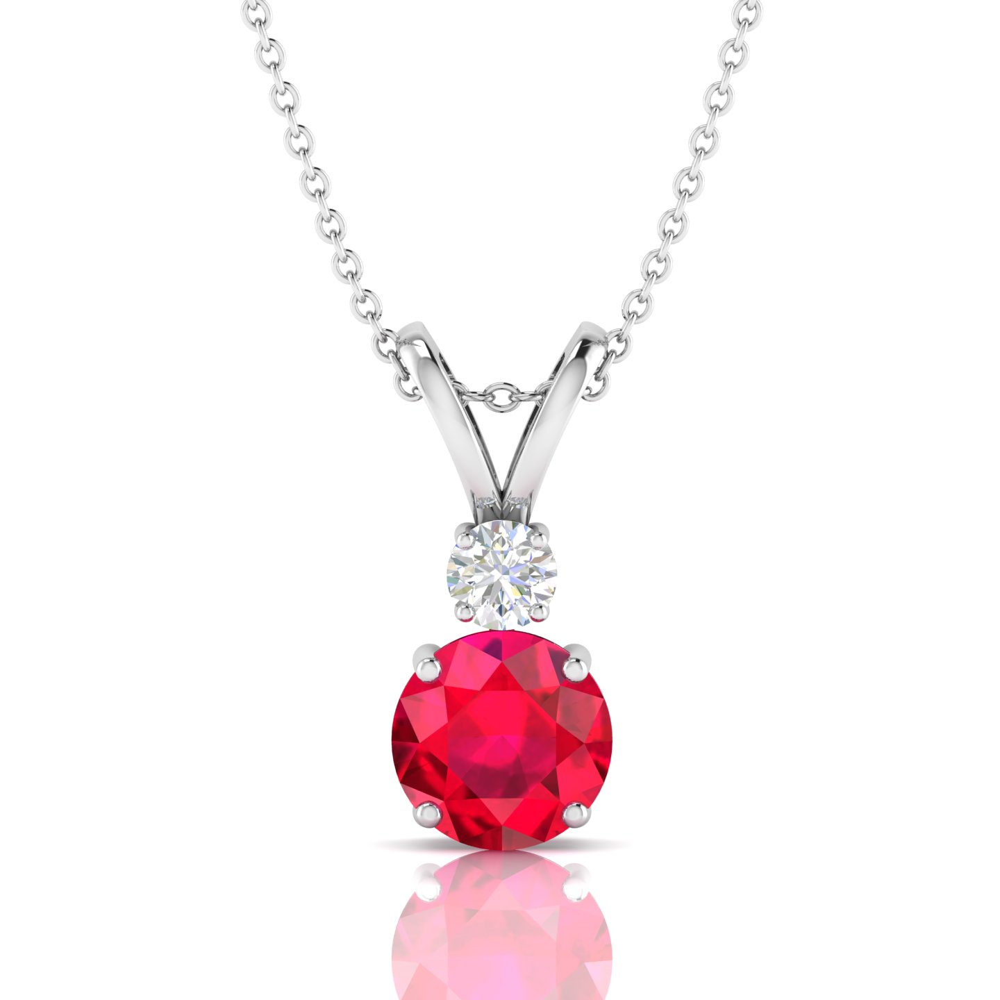 Rose Gold Plated Round Ruby Diamond Solitaire V-Bale Necklace This necklace adds the finishing touch to your look. This necklace completes your style with elegance. This necklace features a prong setting it is Crafted in rich 925 sterling silver with rose gold plating. This necklace contains 8 MM mainstone opal and 4 MM moissanite. It has 2.56 GRM Approx weight, 8 MM Approx width and 18.82 MM Approx length. The gemstone symbolizes passion and love, helping to foster better understanding and harmony within relationships. Rubies are thought to ignite a passion for life and infuse the wearer with charisma, encouraging enthusiasm and a dynamic aura.