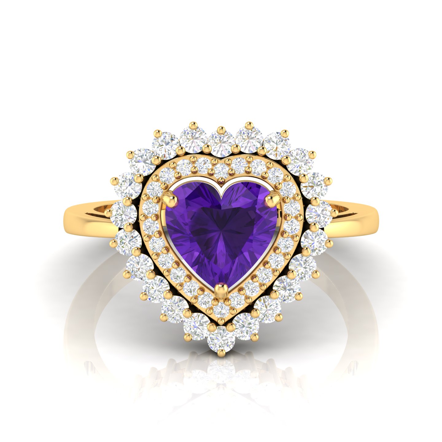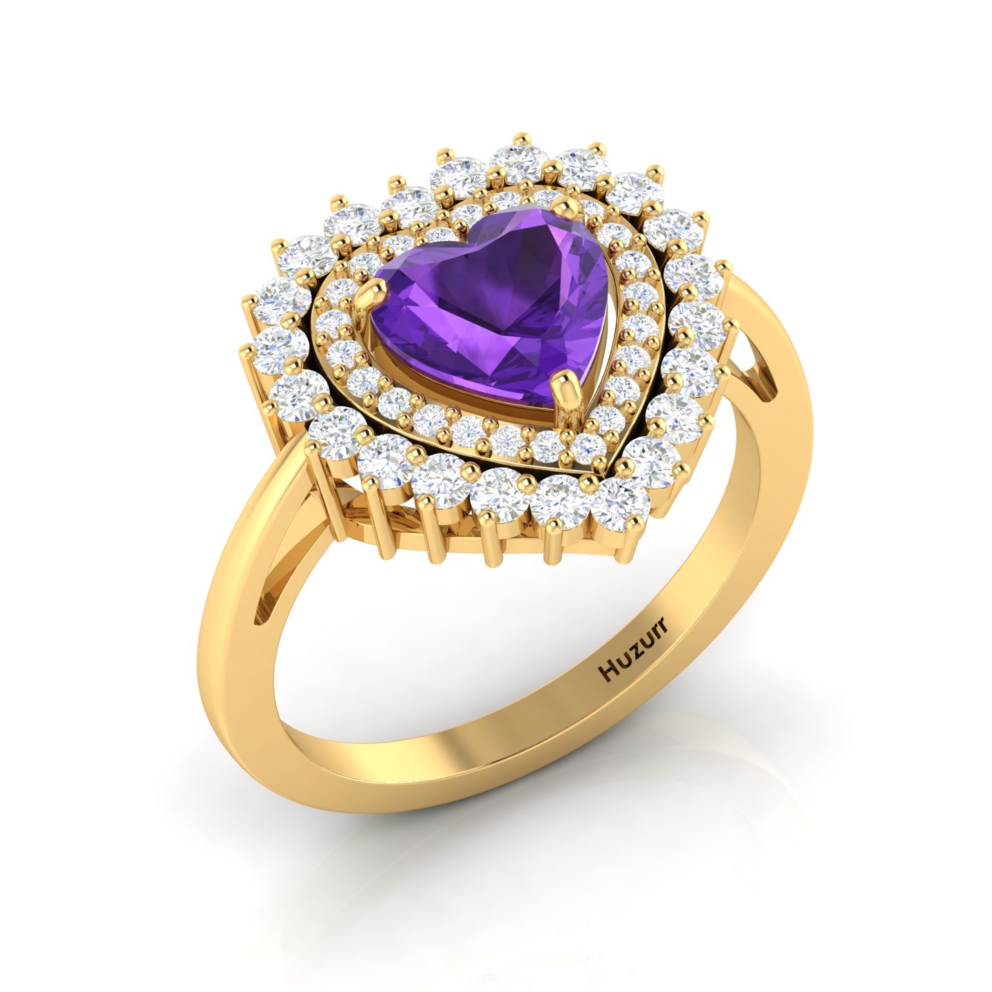 This stunning, modern ring has a hidden diamond halo, a center gem set in a bezel, and a smooth band for an eye-catching look. In addition to supporting a range of wedding band types to tuck underneath, the raised bezel maximizes light play.