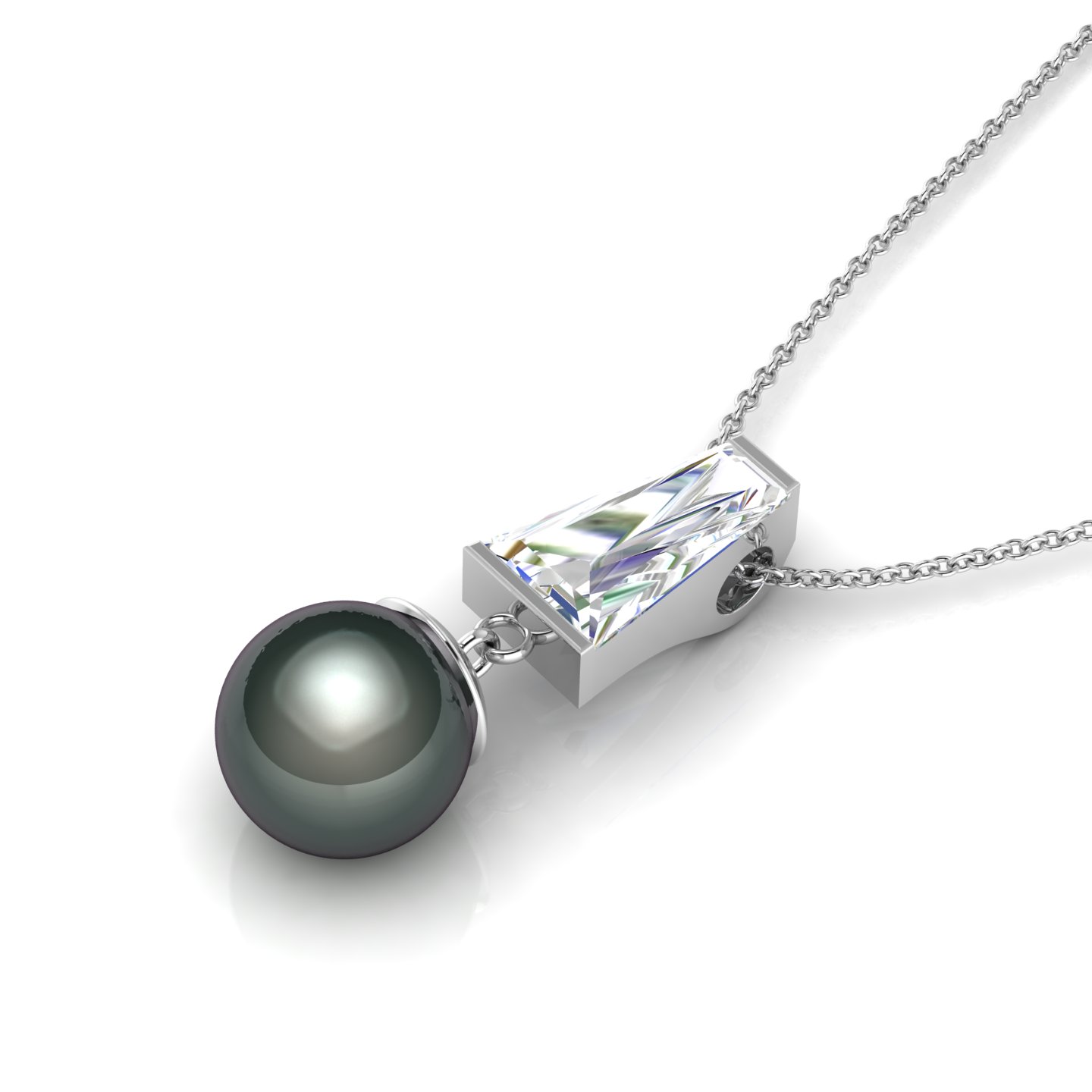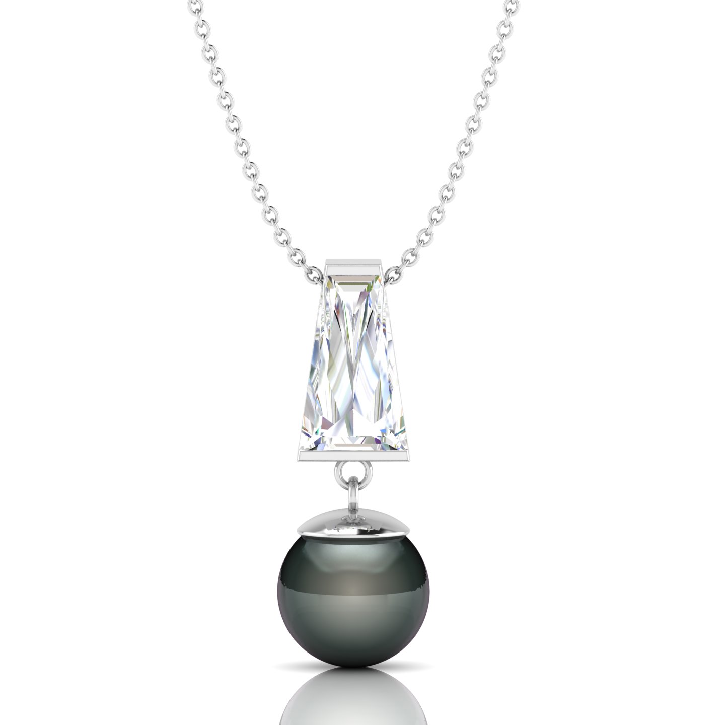 A minimal touch of sparkle that goes with every outfit and every mood. This necklace features a prong setting it is Crafted in rich 925 sterling silver with gold plating. This necklace contains 10 MM mainstone black pearl and 1.3 MM moissanites. It has 1.4 GRM Approx weight, 10.25 MM Approx width and 20.07 MM Approx hight. The cultural and spiritual significance of Tahitian pearls extends to relationships and higher spiritual connections.
