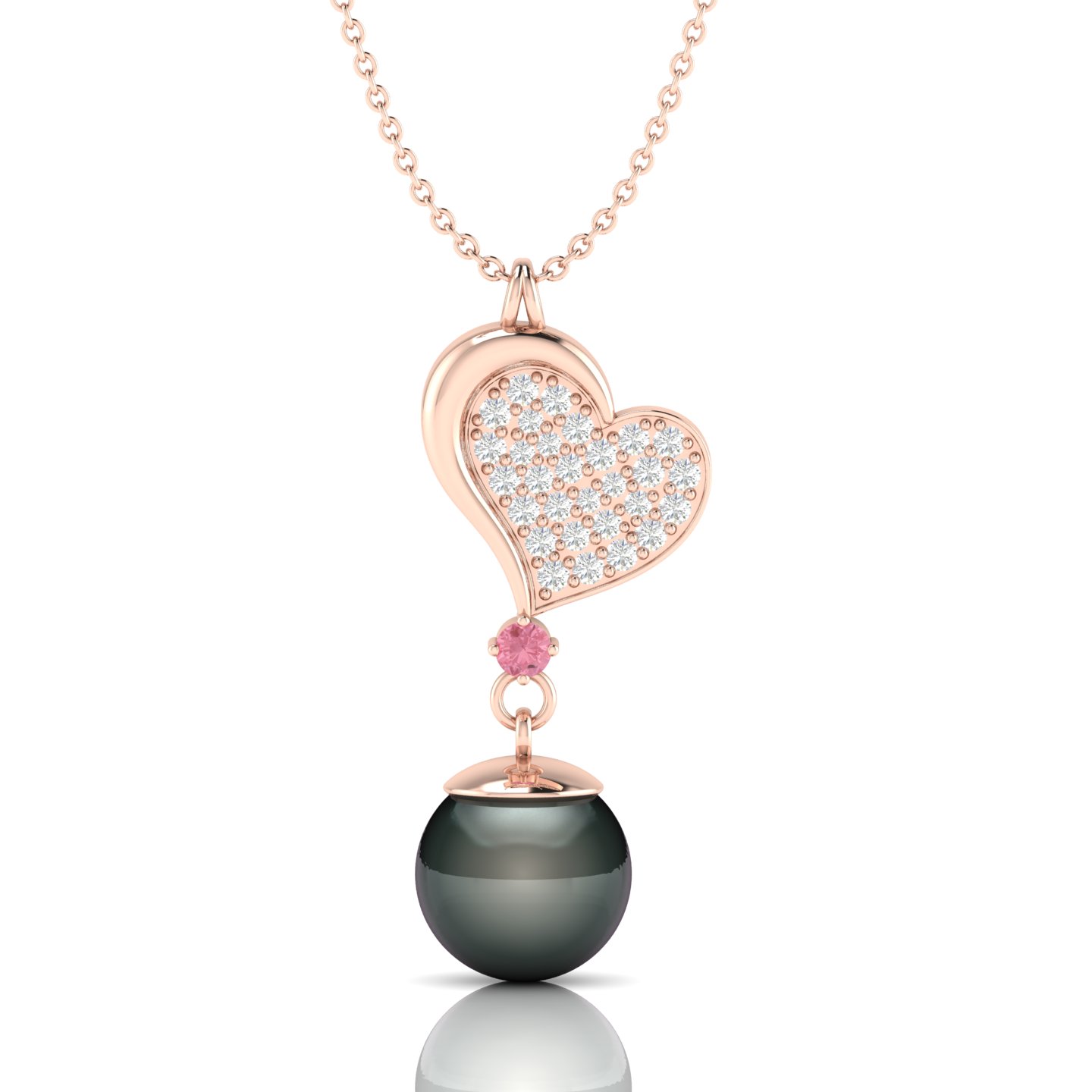 Add a touch of timeless beauty to your look with this stunning handcrafted jewelry piece, designed to make every moment special. These pearls are said to bring harmony to relationships and enhance communication, love, and loyalty. This necklace features a prong setting it is Crafted in rich 925 sterling silver with rose gold plating. This necklace contains 10 MM mainstone black pearl. It has 3.5 GRM Approx weight, 26.52 MM Approx width and 28.86 MM Approx hight.