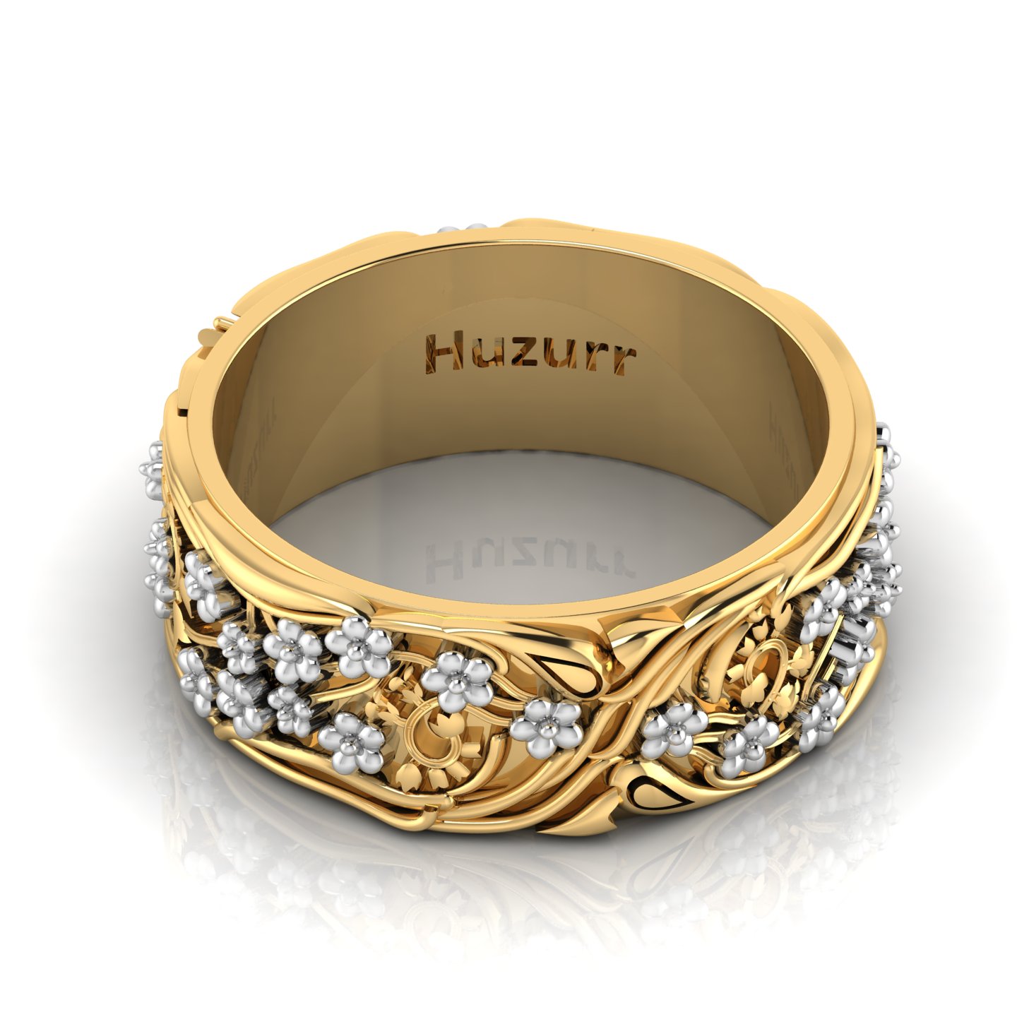 Keep your best friend close to your heart with this Heart Crown Two Tone Gold Plated Claddagh Ring, a piece that signifies an enduring promise. It acts as a timeless Wedding Ring for those renewing their vows. This ring is inspired by the traditional Irish Claddagh ring, mirroring the devotion of a Bride And Groom. It features a heart held by two hands, with a crown on top, and is made in a two-tone metal design. As a matching couple ring, it is a testament to your history. At the center of the ring is a raised silver heart. On both sides of the heart, there are 3D sculpted hands, plated in gold, gently holding the heart. This two-tone ring is crafted with precision. The hands face slightly forward and are designed with detailed fingers and cuffs around the wrists. The cuffs have vertical groove lines for added style. This heart ring is fit for a queen; a stylized crown sits on top of the heart, plated in gold. The crown has several pointed arches, making it look royal. The remaining shank type of ring on both sides is straight and plain which is also gold-plated.